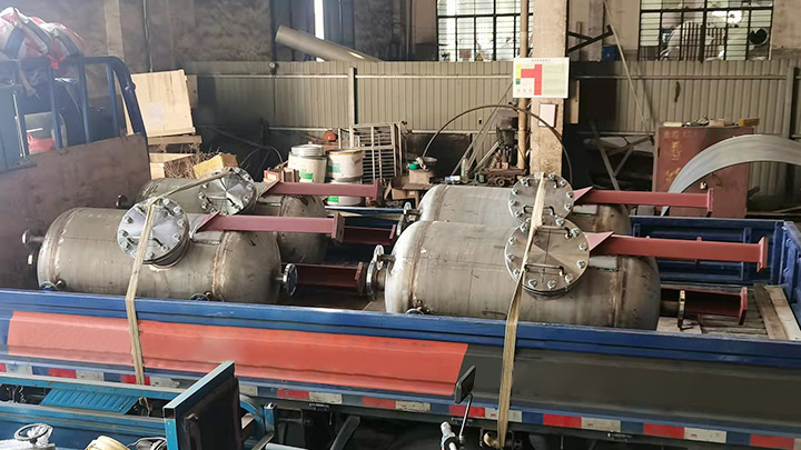 2022.02.28 发往常州的4台压力容器不锈钢蓄水罐顺利交付